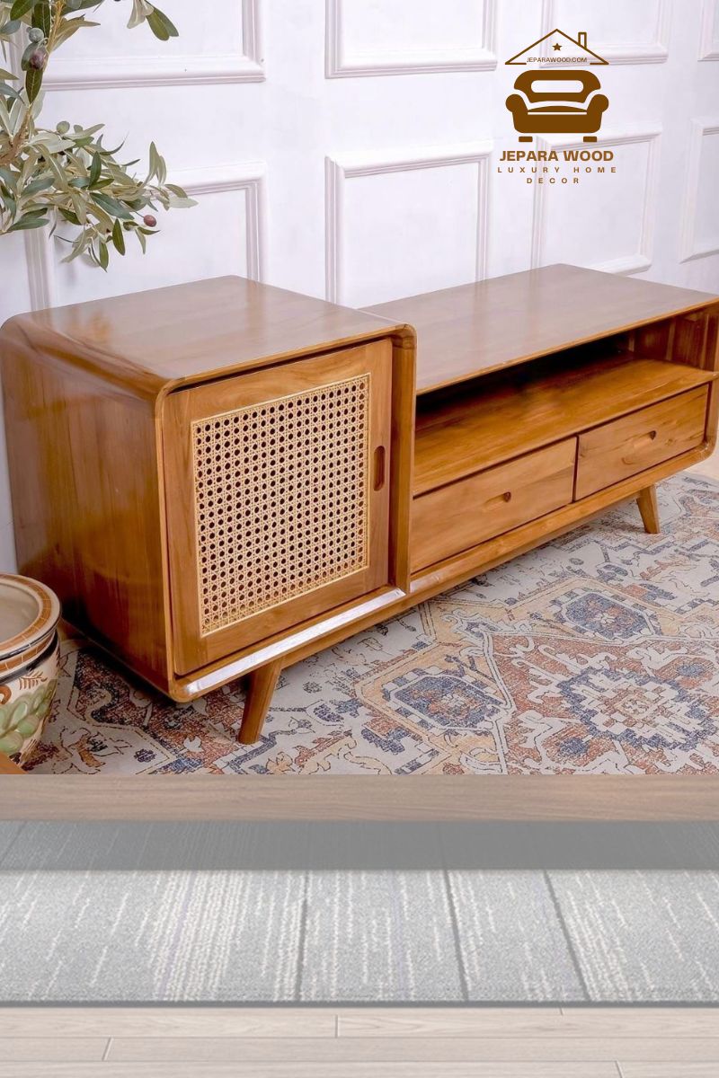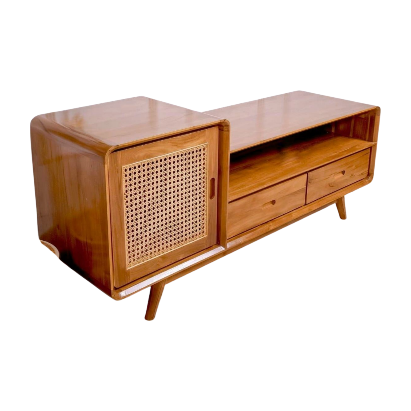 Jenis furniture meja nakas kayu jati rotan menjadi salah satu produk paling cocok untuk kamu miliki. Sebuah furniture yang memadukan kekuatan konstruksi dan keindahan alami kayu jati sekaligus sentuhan alami anyaman rotan.