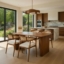Dekorasi ruang makan anda akan semakin estetik, mewah, tinggal memadukan karpet, lighting agar semakin berkelas. Corak kayu jati dan warna coklat memberikan interior anda semakin menawan.